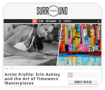 Erin Ashley’s work shown and spotlighted in several editions of Art.com’s magazines.