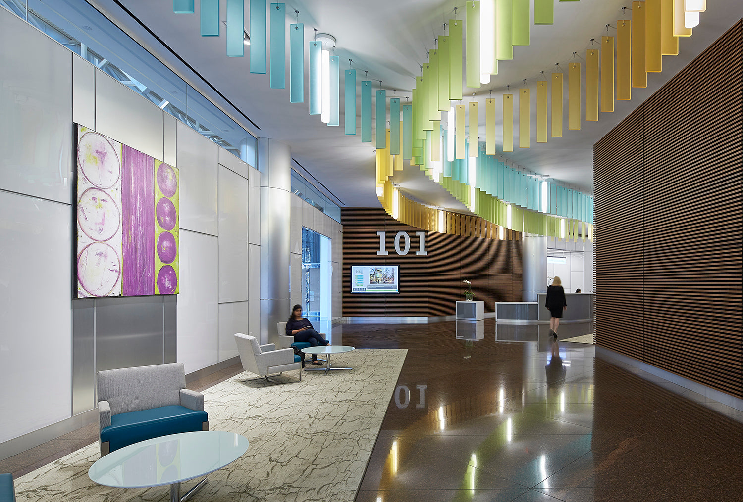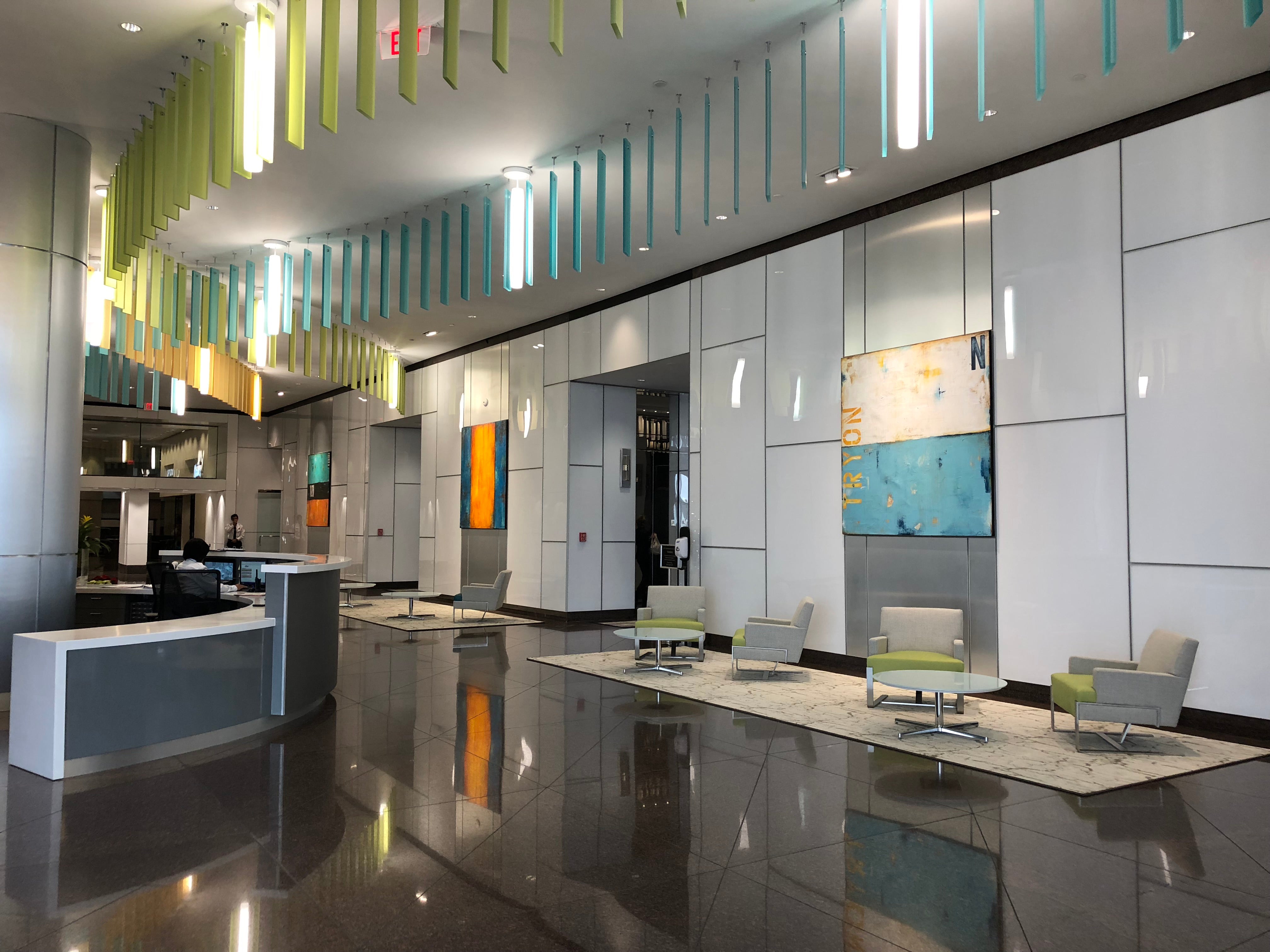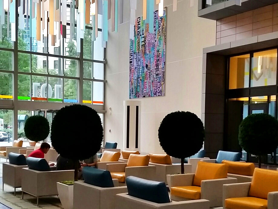 “With an eye for excellence, an interior design firm for the Bascom Palmer Eye Institute in Naples, FL, commissioned Erin to create three signature pieces. These works now stand prominently throughout the lobby , serving as a testament to the institute’s commitment to outstanding aesthetic and innovative expression”