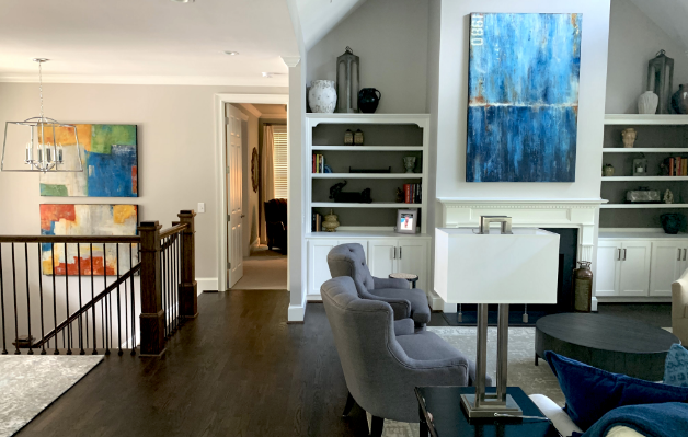 “We looked for months to finish out our living room, however, could not find anything that was just right. With Erin’s help, we were able to commission custom pieces that pulled the entire room together perfectly. Thrilled!